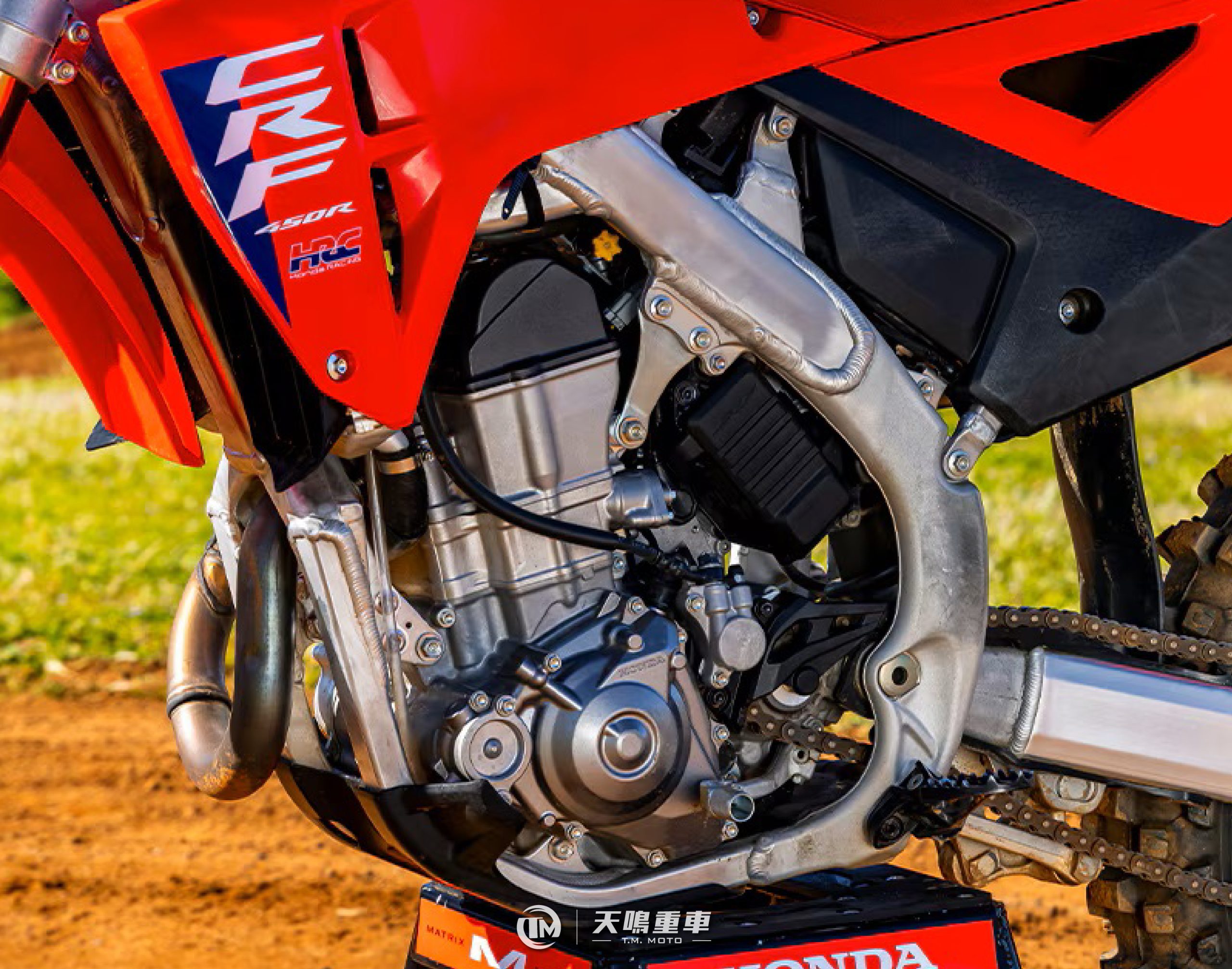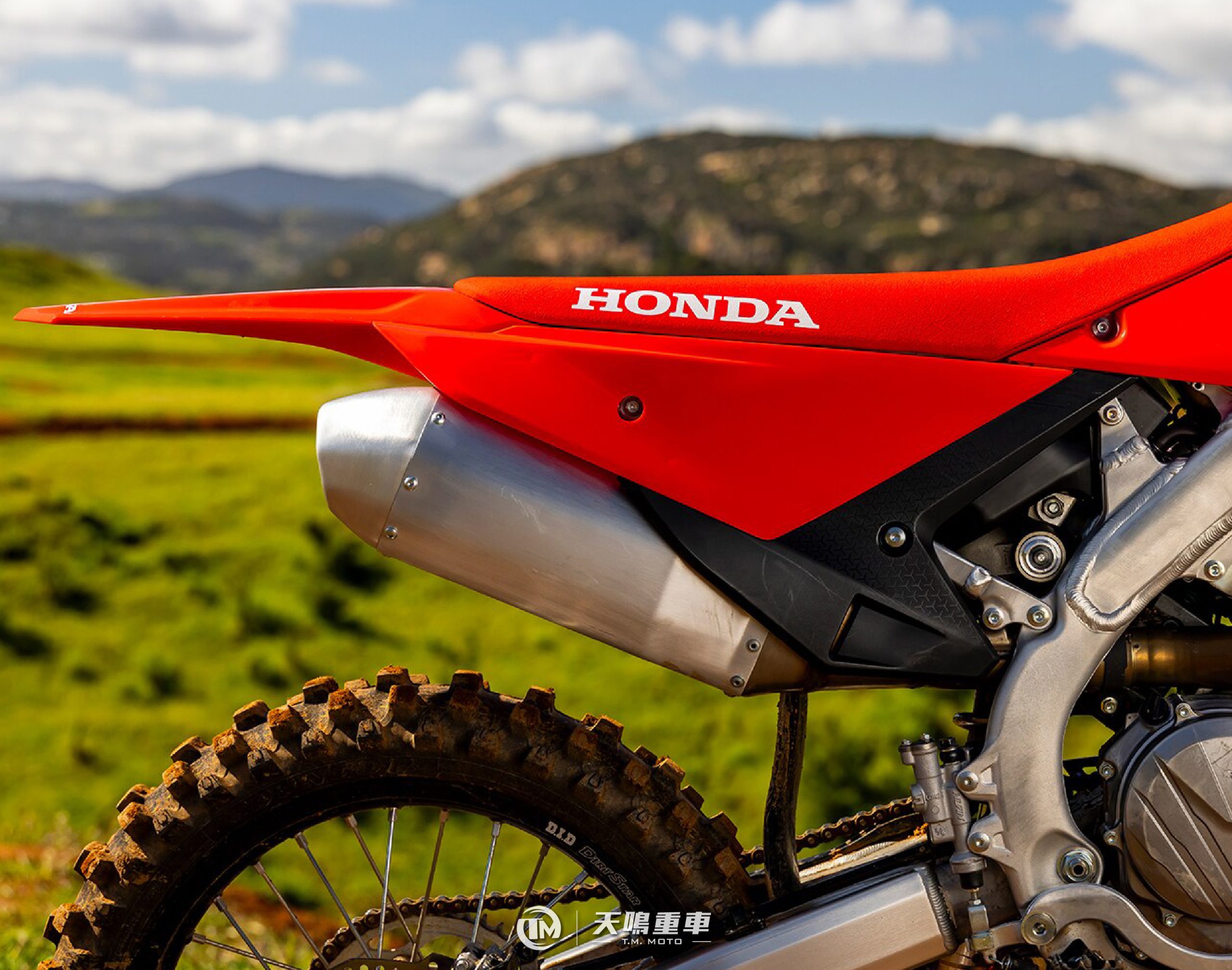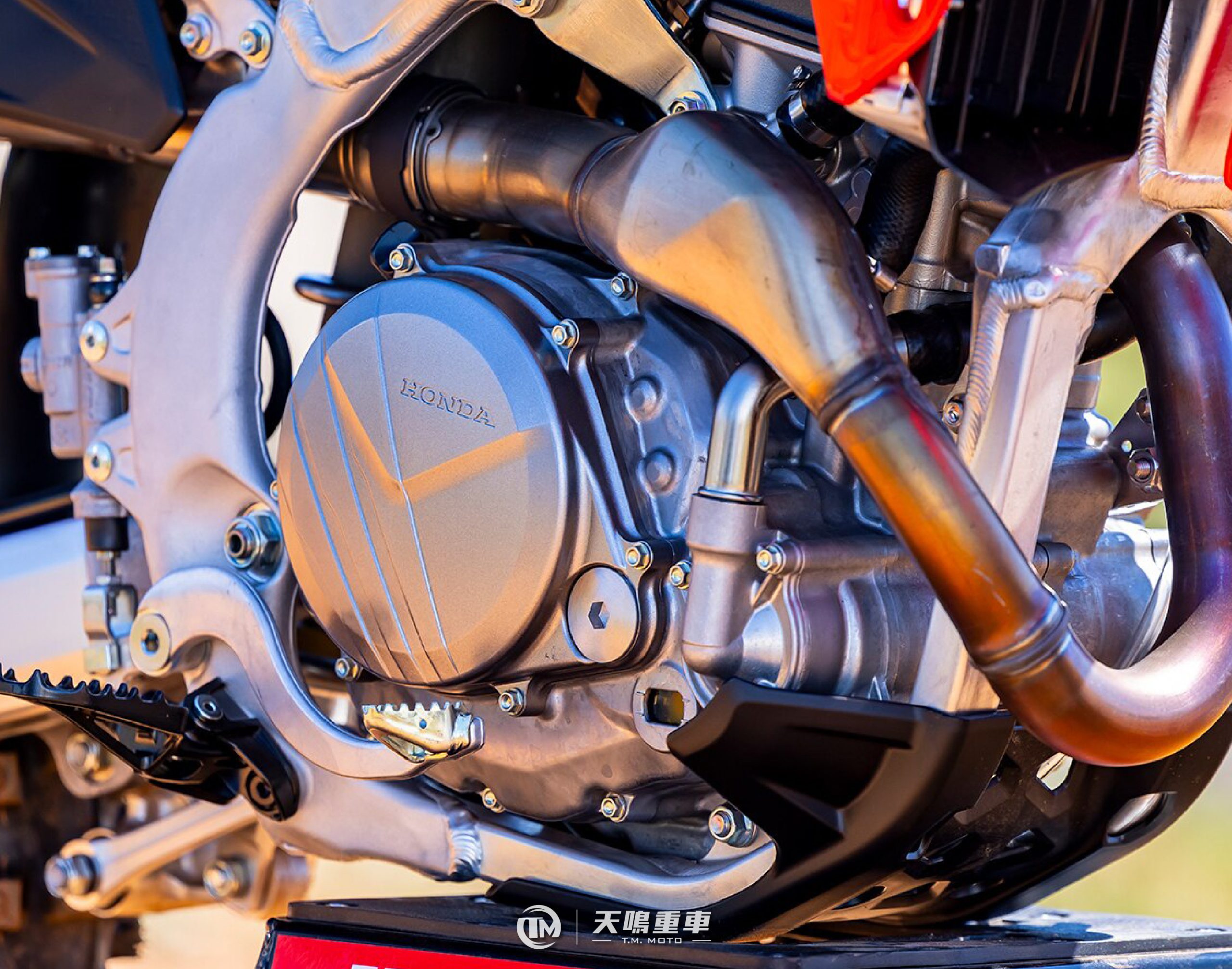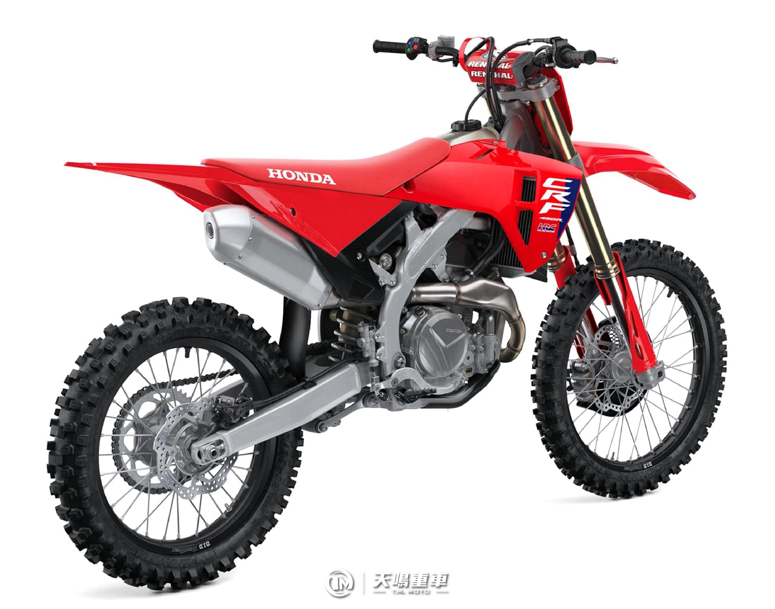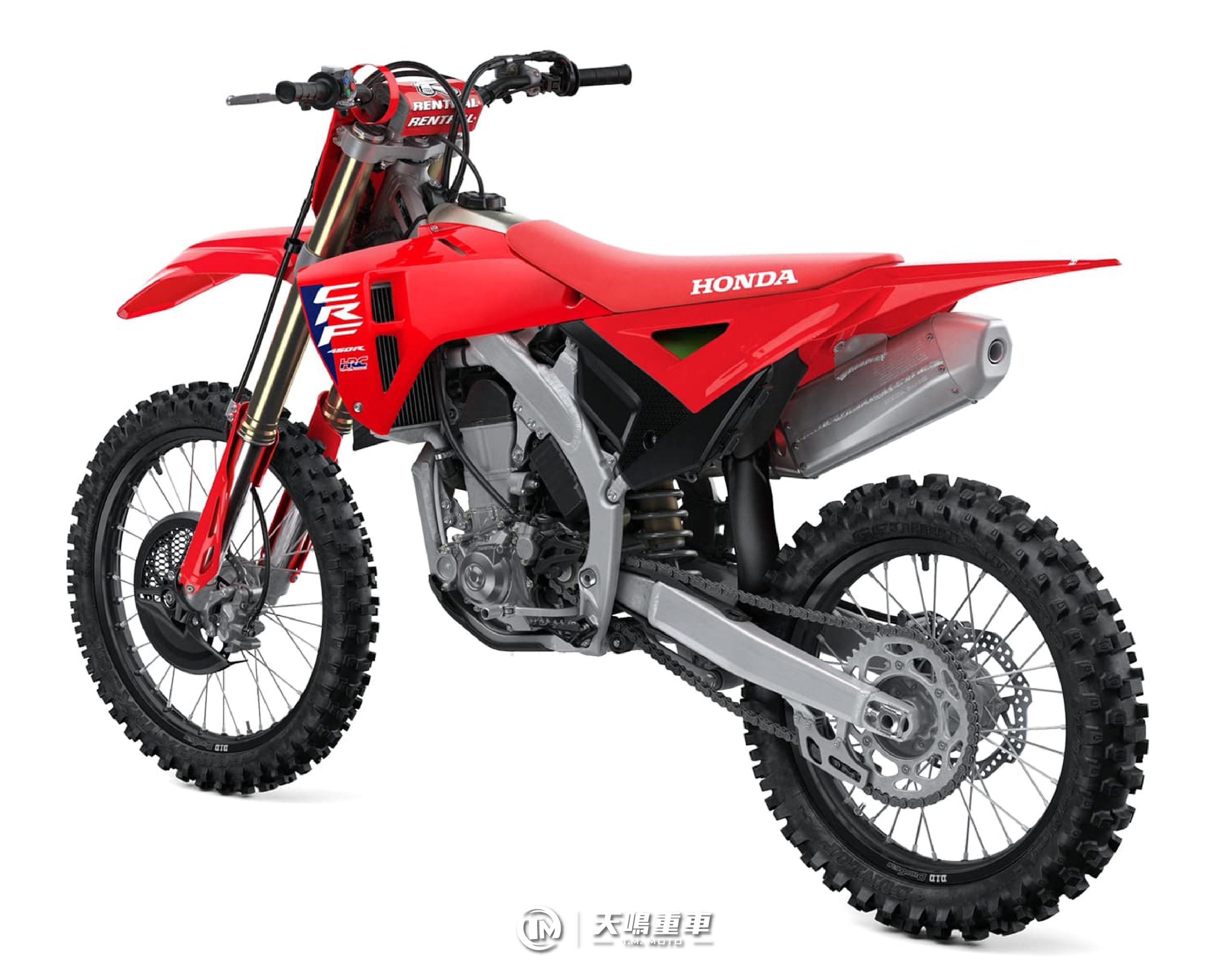 2026 Honda CRF450R 為本田Motocross旗艦越野車,主打輕量化、高輸出與高穩定性。搭載450cc液冷單缸Unicam 引擎,採鈦合金氣閥與窄角設計,輸出強勁、反應敏捷;五速近齒比變速與液壓離合器提供精準操控,搭載 Engine Mode Select 與 Honda Selectable Torque Control,可依賽道或地形快速切換動力與循跡模式,兼顧爆發力與穩定性;全新鋁合金車架,強化過彎與穩定性;整備僅113公斤,車體俐落靈活,延續Honda Extreme Red塗裝,象徵本田越野科技極致演繹,是追求極限操控與爆發力的競技首選。
