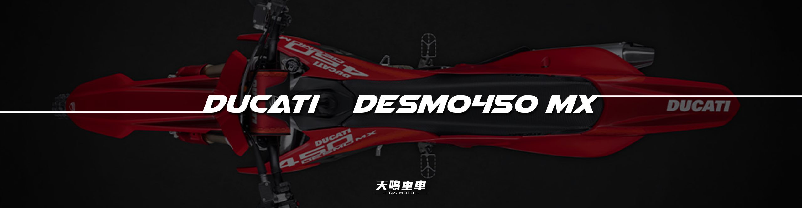 Desmo 450MX 搭載一具全新開發的449c.c.水冷四衝程單汽缸引擎,並首度在MX車系導入Ducati標誌性的Desmodromic氣門系統,輸出高達 63.5 hp / 53.5 Nm,轉速極限 11,900 rpm,瞬間爆發力與線性輸出兼具。